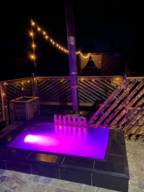 • Jacuzzi y tinajas de agua caliente: Perfectas para disfrutar en pareja, familia o amigos, rodeados de un entorno natural único,  a la luz de las antorchas y cielo estrellado.